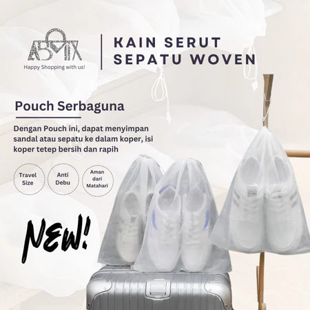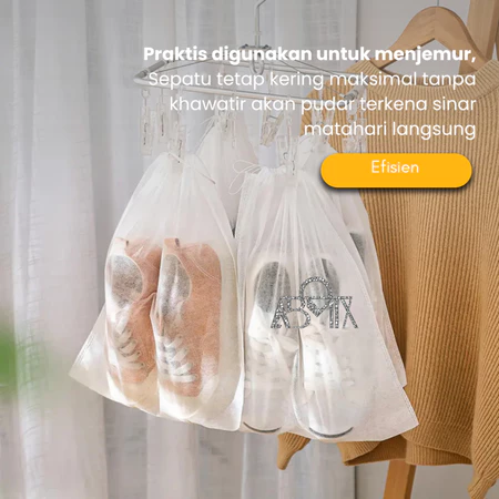 Pouch penyimpanan Sepatu dan benda lainnya yang anti debu dan mudah untuk digunakan. Bisa digunakan sebagai pelapis bagi Sepatu putih saat sedang dikeringkan agar tidak terpapar secara langsung oleh matahari.